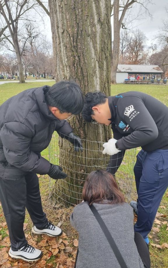 Here are some photos from Community Service Team members' tree-wrapping volunteer activity along the Greenbelt last winter.